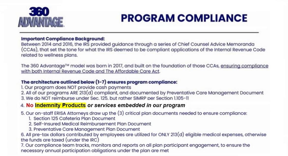 NOT AN INSURANCE INDEMNITY PLAN